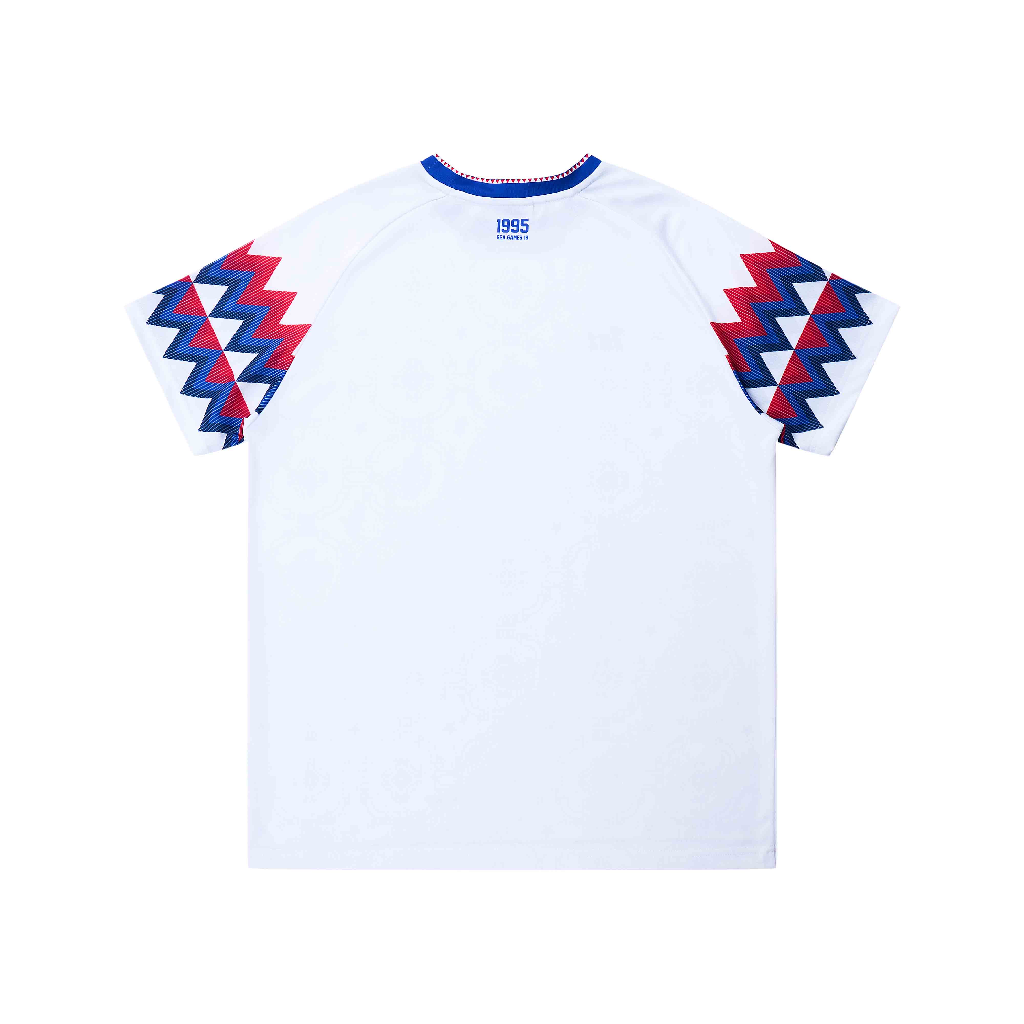 Phía sau cổ áo in thông tin giải đấu như một lời nhắc về thời khắc đáng nhớ, cùng họa tiết gạch bông truyền thống trải đều trên thân áo góp phần tôn vinh bản sắc văn hóa Việt Nam – mộc mạc, mà đầy tinh tế.