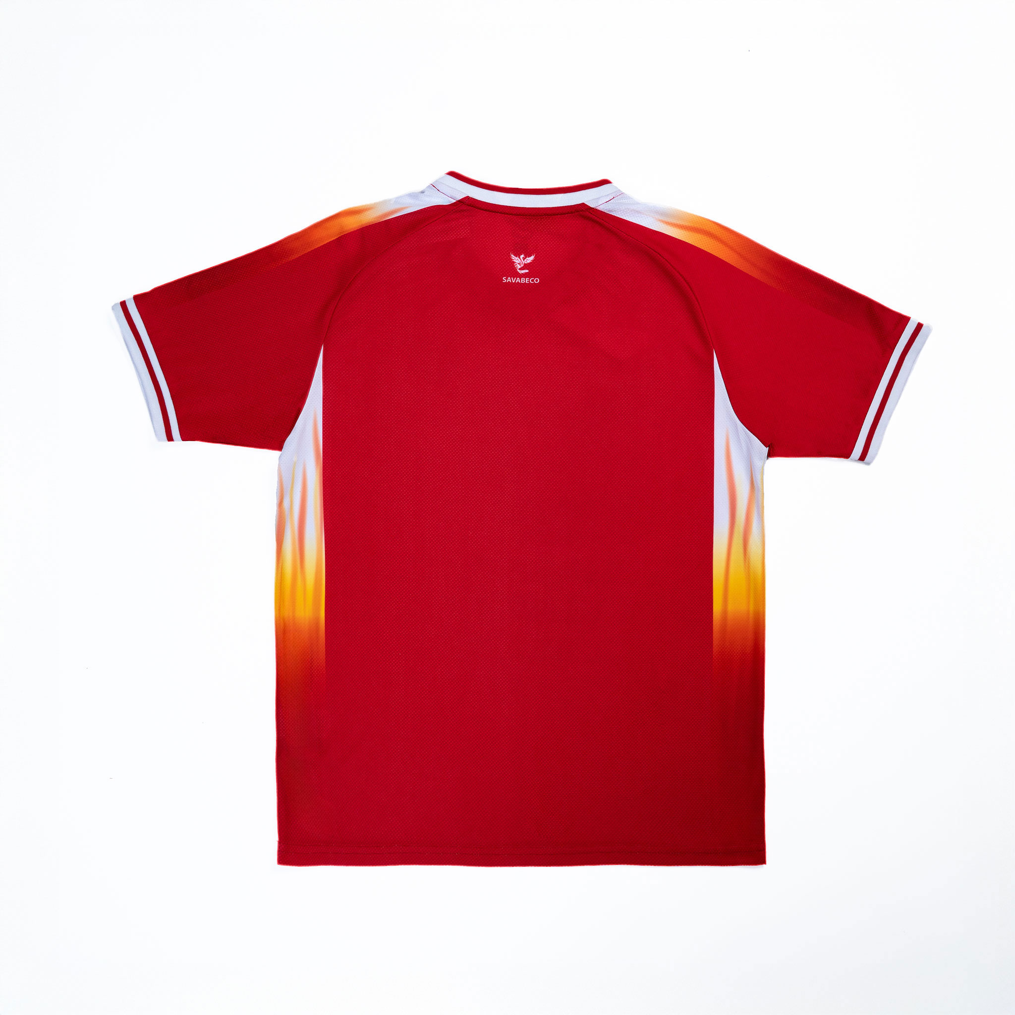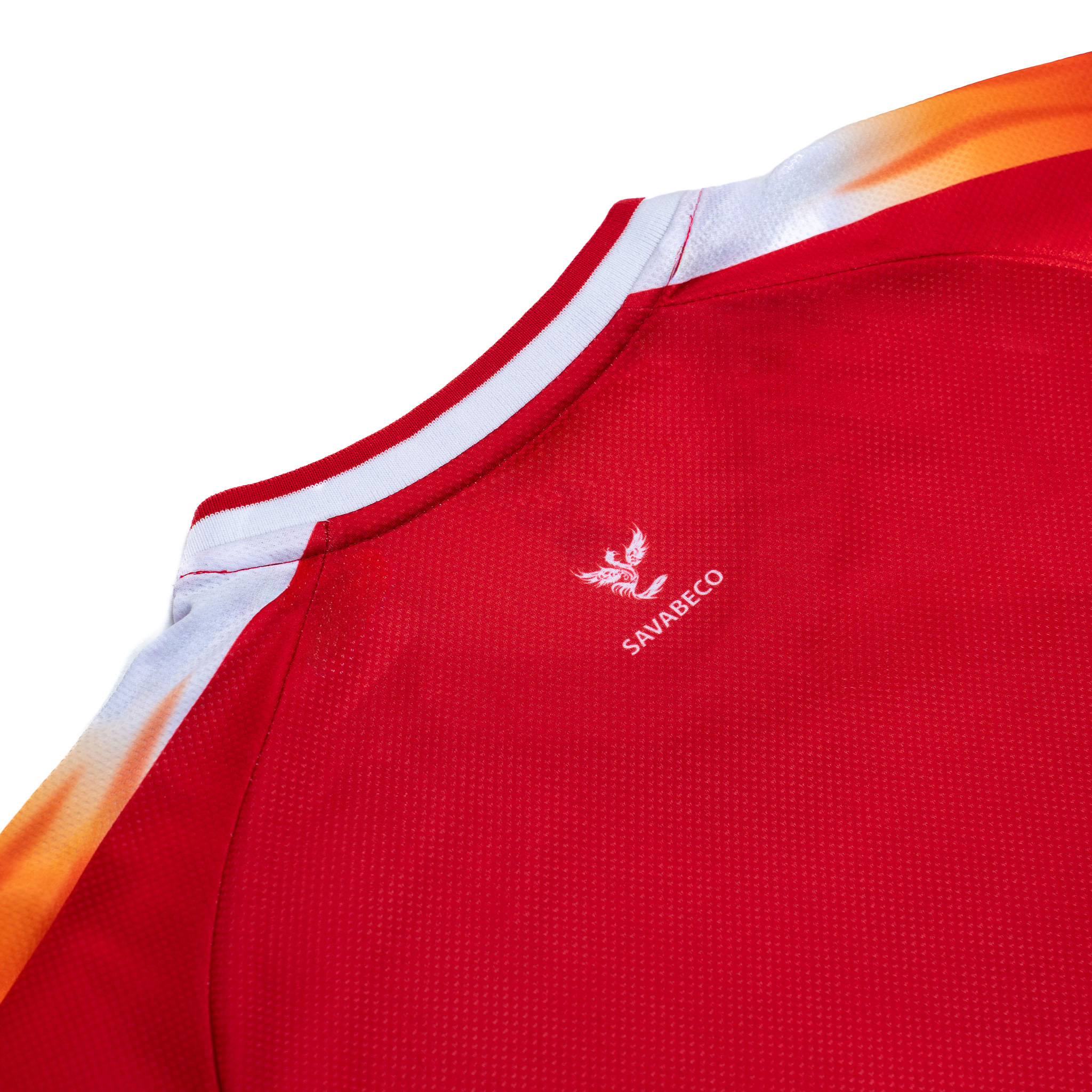 • Hoạ tiết hông và vai áo: dải màu mô phỏng ngọn lửa, gợi lên hình ảnh phượng hoàng lửa cùng tinh thần chiến đấu máu lửa của các cầu thủ.