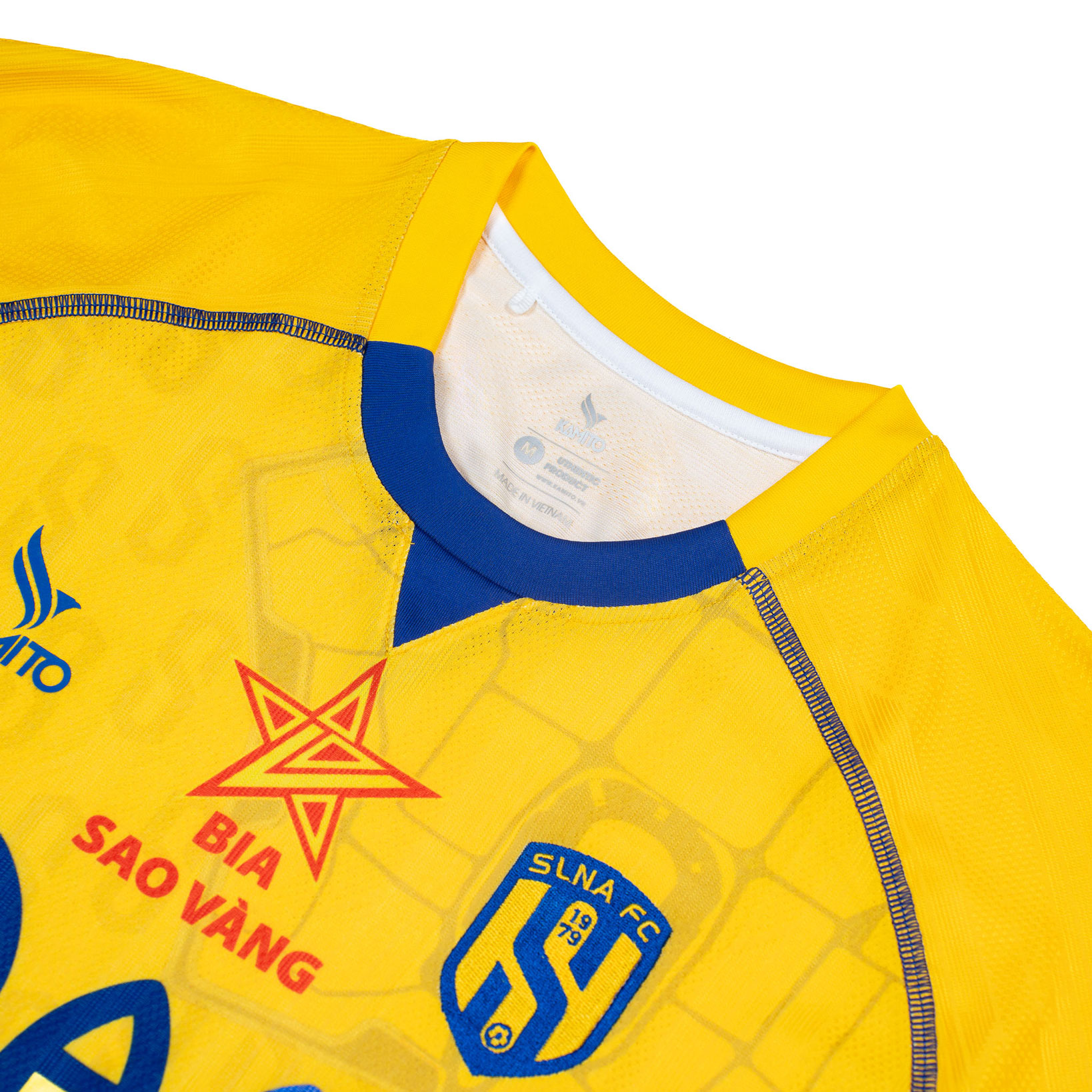 • Logo: Logo Kamito được đặt bên ngực phải, trung tâm là logo Sao Vàng, bên trái là logo CLB SLNA