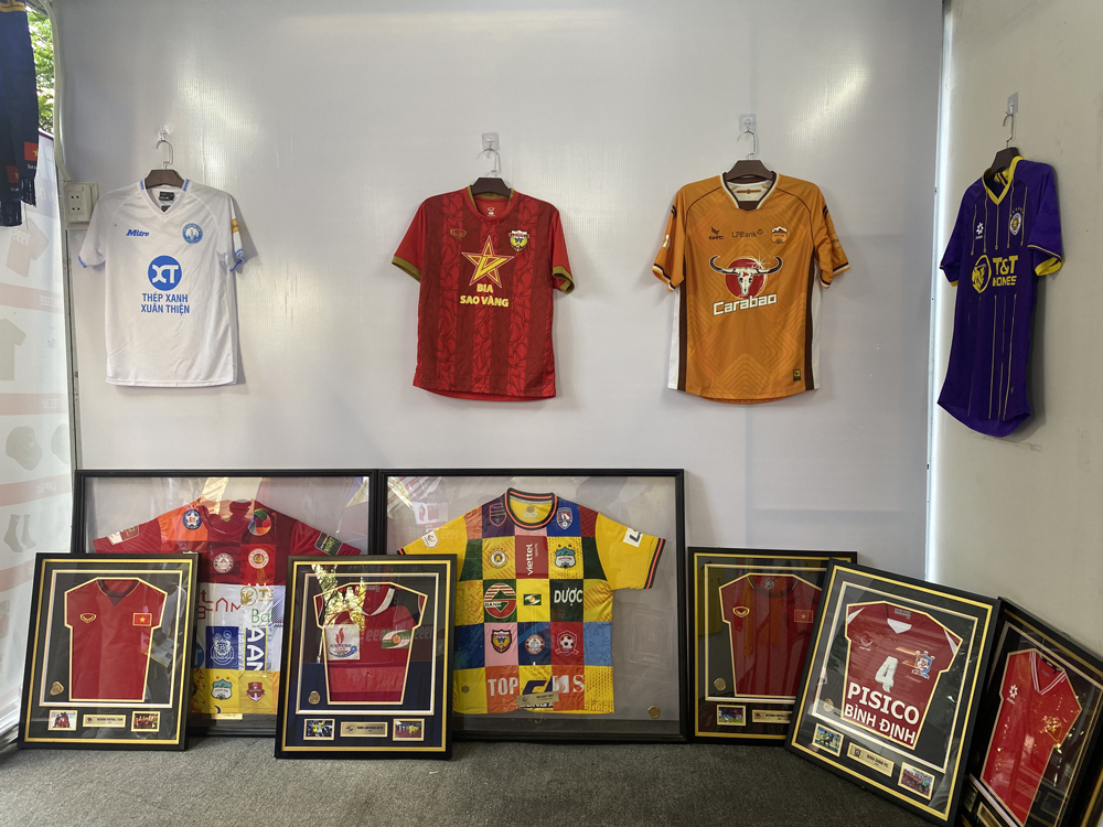 Những mẫu áo của Đội tuyển Việt Nam qua các thời kỳ gắn liền với những chiến thắng lịch sử (U16 Việt Nam 2000 - VCK U16 Châu Á / U20 Việt nam 2017 - VCK World Cup U20 / U23 Việt Nam 2018 - VCK U23 Châu Á / ĐT Việt Nam 2024 - AFF Cup…) , cùng mẫu áo của các CLB đang thi đấu tại V.League 2024/25 đã được trưng bày tại pop-up space lần này.