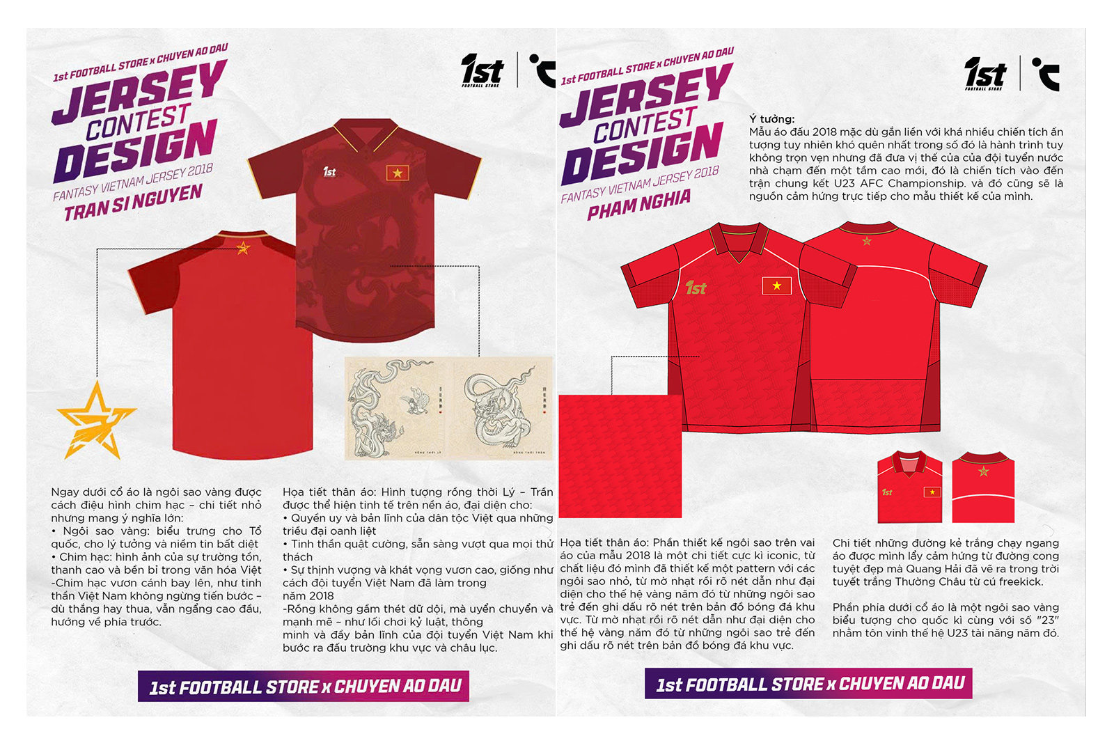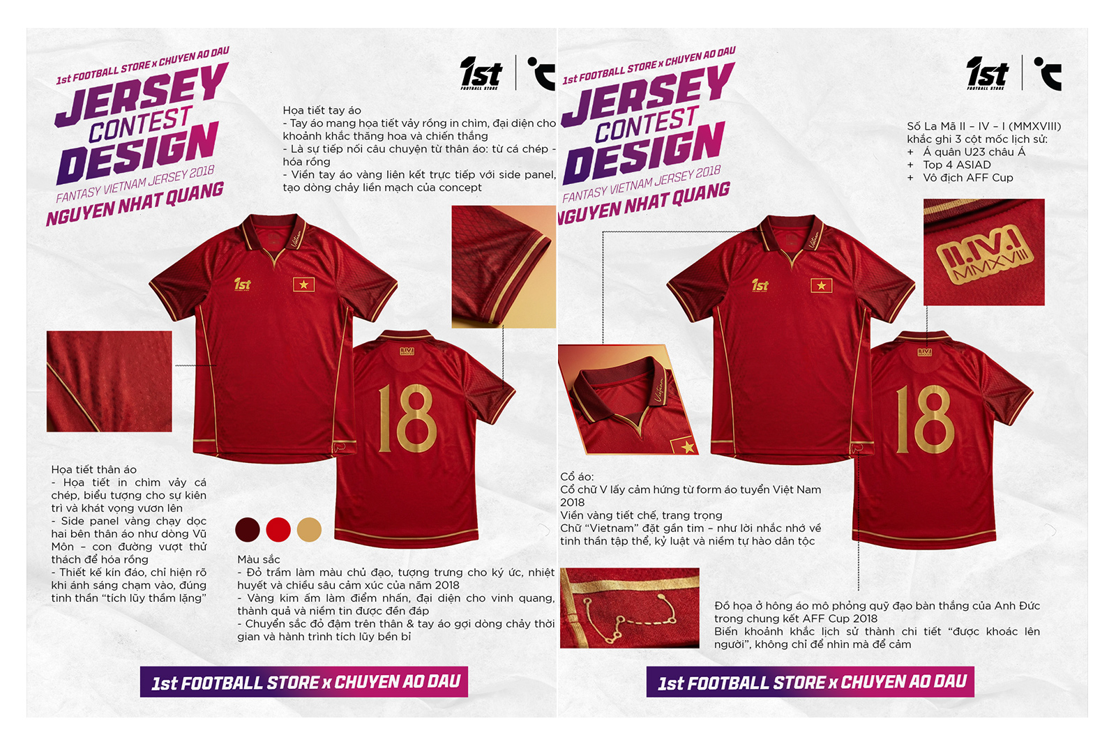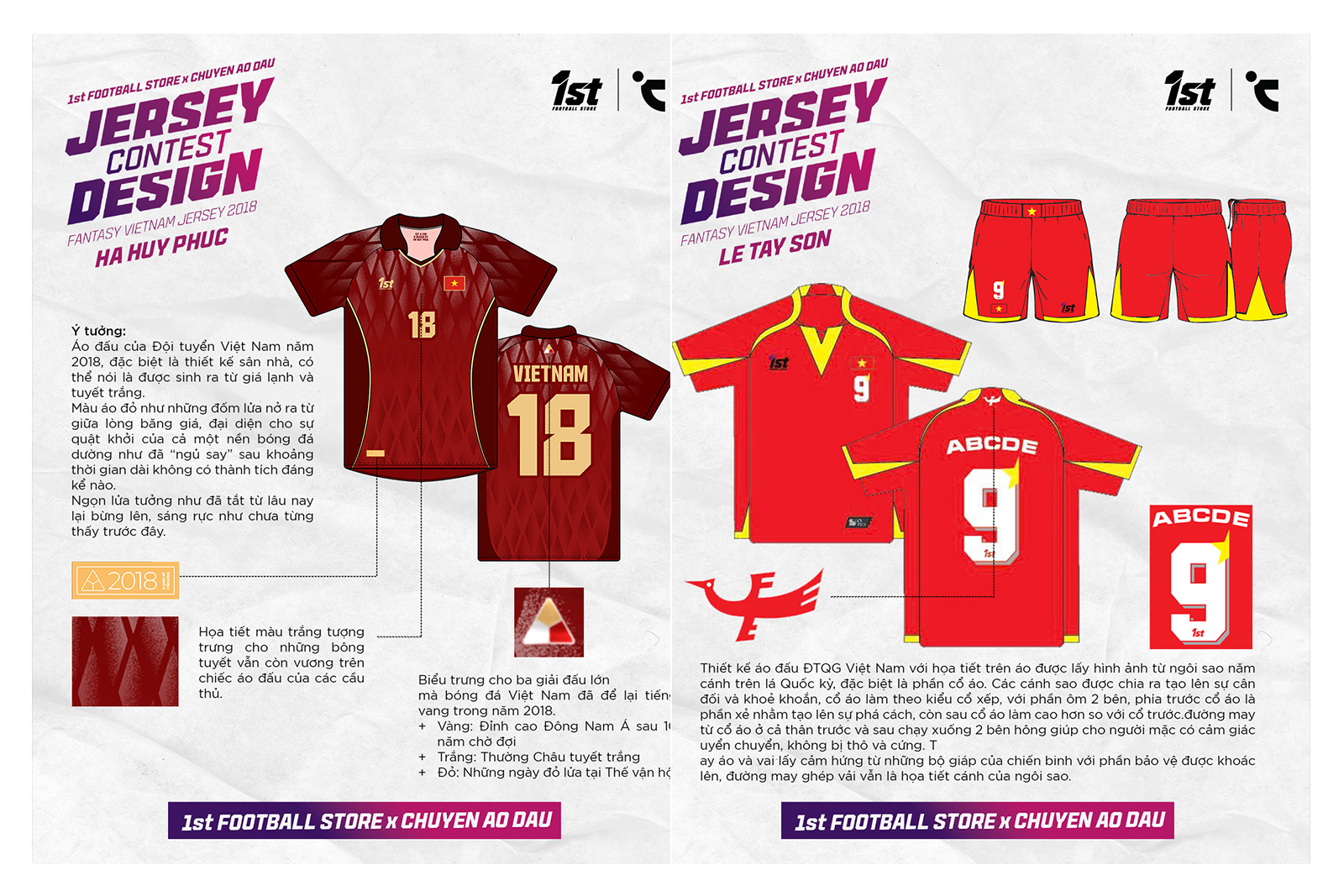 1st Football x Chuyện Áo Đấu tổ chức cuộc thi 'Jersey Design Contest Vol.1' với chủ đề FANTASY VIETNAM JERSEY 2018 - lấy cảm hứng từ mẫu áo Đội tuyển Việt Nam năm 2018 và những chiến thắng khiến cả nước tự hào năm ấy.