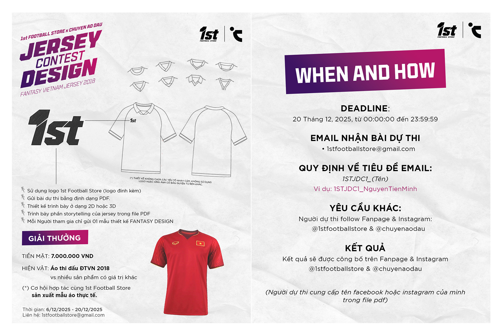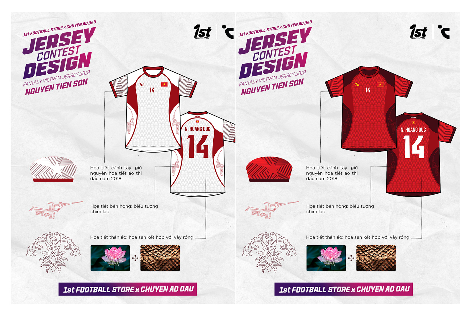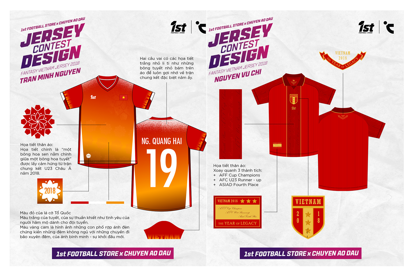1st Football x Chuyện Áo Đấu tổ chức cuộc thi 'Jersey Design Contest Vol.1' với chủ đề FANTASY VIETNAM JERSEY 2018 - lấy cảm hứng từ mẫu áo Đội tuyển Việt Nam năm 2018 và những chiến thắng khiến cả nước tự hào năm ấy.